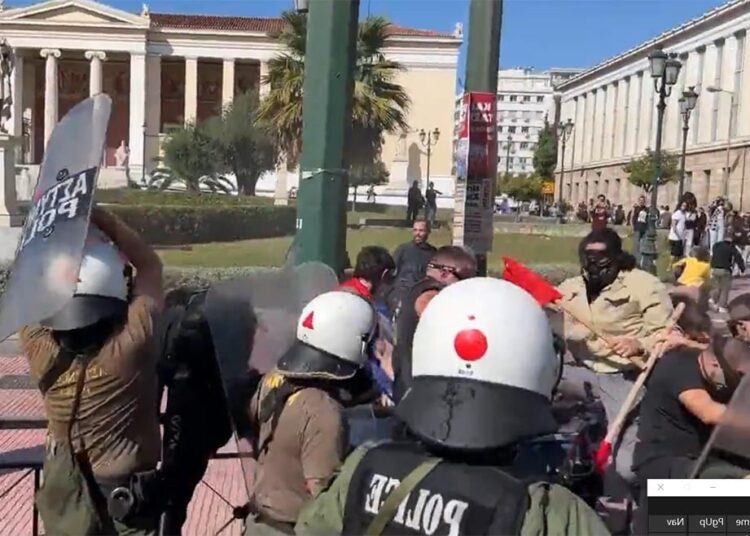 Απέτυχε για μία ακόμα φορά η προσπάθεια της αστυνομίας και της κυβέρνησης να διαλύσουν στο ξεκίνημά της τη φοιτητική διαδήλωση, χτυπώντας τους φοιτητές και τις φοιτήτριες στα Προπύλαια. Τα ΜΑΤ για μια ακόμα φορά περικύκλωσαν τους νέους και τις νέες που συγκεντρώνονταν και παρά τον όγκο των διαδηλωτών τούς εμπόδιζαν να βγουν στον δρόμο. Μάλιστα όταν επιχείρησαν οι φοιτητές να αναπτυχθούν τους χτύπησαν με μεγάλη αγριότητα. Χαρακτηριστικά είναι τα πλάνα με άνδρα των ΜΑΤ, ο οποίος χτυπά επανειλημμένα με την ασπίδα του φοιτήτρια στο κεφάλι!