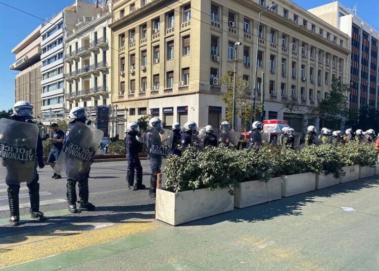 Η κυβέρνηση και η ΕΛΑΣ προσπαθούν να επιβάλλουν το νόμο Χρυσοχοΐδη για τις διαδηλώσεις, ο οποίος -όπως αποδεικνύεται- ο μοναδικός του σκοπός είναι να εμποδίσει και να καταργήσει τις διαδηλώσεις. Ακόμα και το πρόσχημα του να αφεθούν δήθεν κάποιες λωρίδες ελεύθερες για την κυκλοφορία των οχημάτων αποδεικνύεται έωλο, καθώς αυτές τις καταλαμβάνουν… οι δυνάμεις καταστολής που αστυνομεύουν τις πορείες.