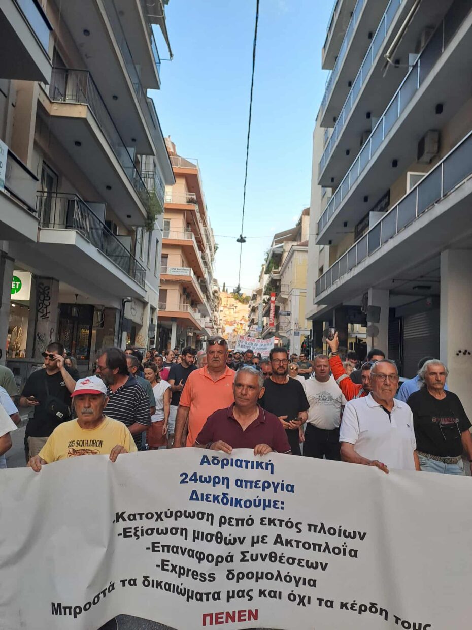«Συνεχίζουμε μαχητικά – ανυποχώρητα με καθολική συμμετοχή τον απεργιακό μας αγώνα», δηλώνει η ΠΕΝΕΝ και οι ναυτικοί στα πλοία της Αδριατικής που τη Δευτέρα απεργούν για 8η συνεχόμενη ημέρα.