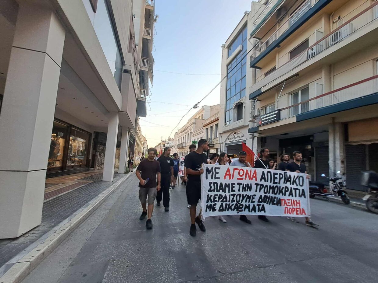 Μετά τη συγκέντρωση πραγματοποιήθηκε μαχητική πορεία στους δρόμους της Πάτρας.