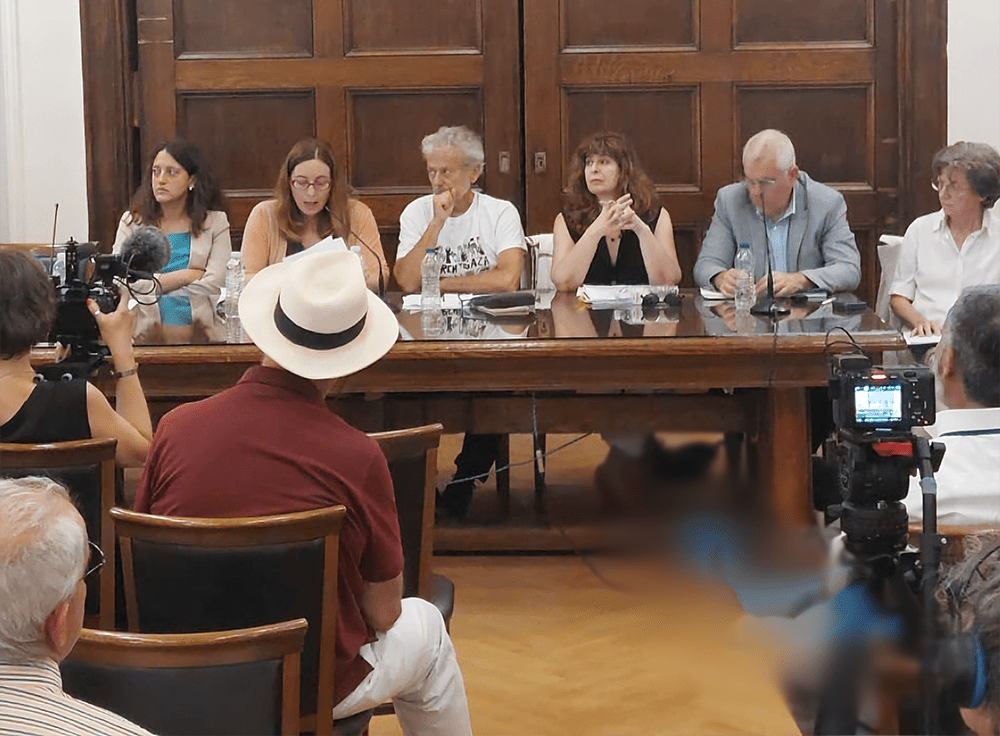 Πρώτος τον λόγο πήρε ο Γιώργος Τσαρμπόπουλος, ο οποίος μίλησε για «διαρκές έγκλημα». Όπως είπε οι δυνάμεις του λιμενικού επί 15 ώρες παρακολούθουσαν τη πορεία του σκάφους χωρίς να παρέμβουν. Τόνισε ακόμα ότι μόνο το 2024 έγιναν αλλά 27 ναυάγια σε σκάφη μεταφοράς προσφύγων και μεταναστών, με 61 νεκρούς και 59 αγνοούμενους! Από το πάνελ τοποθετήθηκαν ακόμα ο Βασίλης Παπαδόπουλος από το Ελληνικό Συμβούλιο για τους Πρόσφυγες, ο οποίος αναφέρθηκε στο ιστορικό της υπόθεσης, η Δήμητρα Λιναρδάκη από τη Πρωτοβουλία δικηγόρων και νομικών για το ναυάγιο της Πύλου η οποία μίλησε για τις ανακριτικές ενέργειες αλλά και παραλείψεις, η Ελένη Σπαθανά από την Υποστήριξη Προσφύγων στο Αιγαίο για το πόρισμα-κόλαφο του Συνήγορου του Πολίτη, αλλά αναφέρθηκε και στο πόρισμα Frontex που κάνει λόγο για επιχείρηση αποτροπής του πλοίου στη Πύλο και όχι διάσωσης του, η Κατερίνα Πουρνάρα από την Ελληνική Ένωση για τα Δικαιώματα του Ανθρώπου και η Νατάσα Νταϊλιάνη από το Legal Centre Lesvos. Ακολούθησαν σύντομα σχόλια και τοποθετήσεις. Κοινή παραδοχή η ανάγκη αγώνα για δικαιοσύνη αλλά και για να σταματήσει η δολοφονική πολιτική κατά προσφύγων και μεταναστών.