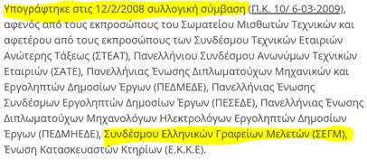 Ο ΣΕΓΜ, αν και εκπροσωπεί και έχει ως μέλη του σημαντικά μελετητικά γραφεία του κλάδου, δεν έχει έρθει σε καμία συνάντηση με το ΣΜΤ εδώ και πολλά χρόνια για το ζήτημα της ΣΣΕ και η πρόεδρος του ΣΕΓΜ, όταν ρωτήθηκε στην παρέμβαση για ποιο λόγο συμβαίνει αυτό, παρέπεμψε το θέμα στο «μέλλον». Όταν φυσικά απαντήσαμε πως αυτό το απροσδιόριστο μέλλον έχει ήδη αργήσει και μάλιστα πολύ, ξεκινήσανε τα ψέματα και οι υπεκφυγές. Η πρόεδρος έθεσε ως «επιχείρημα» πως ο ΣΕΓΜ δεν έχει ως αρμοδιότητα την υπογραφή ΣΣΕ. Αυτό όμως σκοντάφτει σε μία διπλή πραγματικότητα: