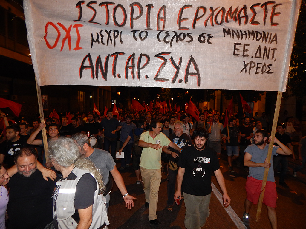 Το βράδυ της 5ης Ιούλη 2015 μια μαζική κι ενθουσιώδης διαδήλωση της ΑΝΤΑΡΣΥΑ ανέβαινε από τα Προπύλαια στο Σύνταγμα για να συναντήσει τον κόσμο που ήδη συγκεντρώνονταν στην πλατεία που είχε γίνει το θέατρο μεγάλων κινητοποιήσεων και συγκρούσεων με την αστυνομία. Σε κλίμα πανηγυρικό για τη συγκλονιστική επικράτηση του «Όχι» στο δημοψήφισμα με 61,3% και με ένα πανό μπροστά που έγραφε «Ιστορία ερχόμαστε». Ωστόσο, ενώ οι δρόμοι κόχλαζαν υπέρ του «Όχι», στους διαδρόμους προωθούνταν τα σχέδια για την ακύρωσή του.