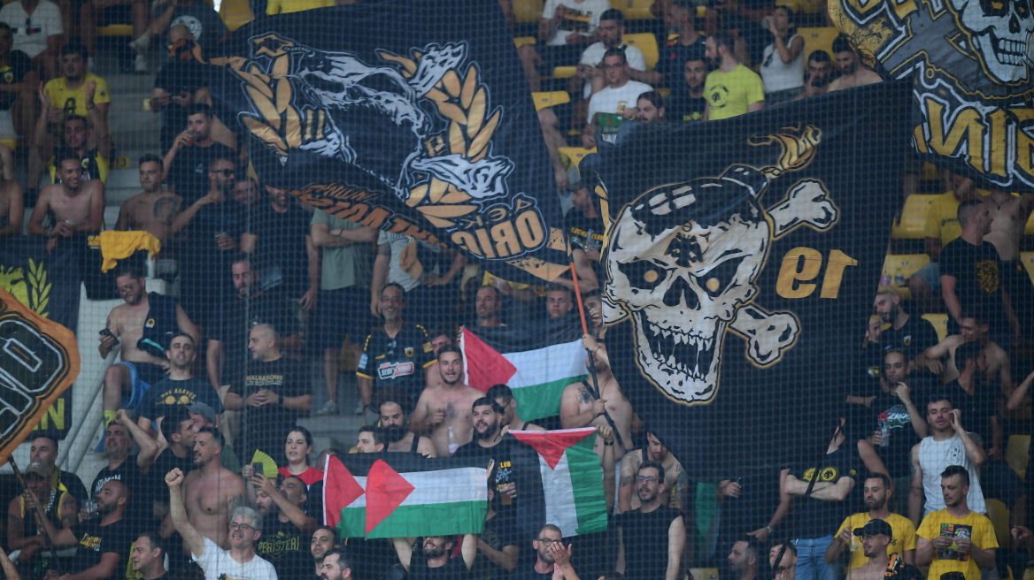 Αντιμέτωπη με τη Χάποελ Μπερ Σεβά ήρθε η ΑΕΚ την Πέμπτη στον πρώτο επίσημο αγώνα της για τη νέα αγωνιστική χρονιά 2025-2026. Την παράσταση, όμως, έκλεψαν οι οπαδοί της καθώς μετέτρεψαν το ματς σε διαμαρτυρία ενάντια στη γενοκτονία του Παλαιστινιακού λαού. Η Χάποελ είναι ισραηλινή ομάδα, δευτεραθλήτρια πέρυσι στο πρωτάθλημα ποδοσφαίρου του κράτος γενοκτόνου. Ο αγώνας πρακτικά είχε ξεκινήσει ήδη από τις προηγούμενες ημέρες όπου οπαδοί της Χάποελ με μηνύματα στα μέσα κοινωνικής δικτύωσης ζήτησαν νίκη γοήτρου απέναντι στους υποστηρικτές της Παλαιστίνης.