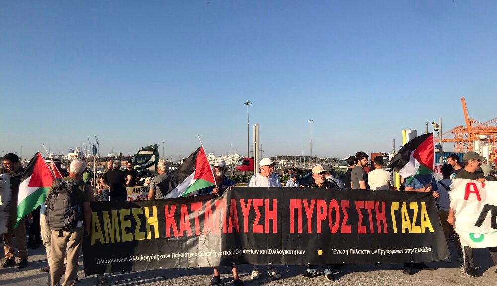 Από πλευρά μας, είναι καθήκον μας απέναντι στον Παλαιστινιακό λαό, αλλά και όλους τους λαούς της περιοχής να κάνουμε ό,τι περνάει από το χέρι μας για να εμποδίσουμε και να καθυστερήσουμε την ισραηλινή πολεμική μηχανή, να δυσκολέψουμε το έργο της, να μπλοκάρουμε τα γρανάζια της. Μαζί με τους εργαζομένους, τους συνταξιούχους, τη νεολαία και το λαό, δε θα επιτρέψουμε κανένα λιμάνι αλλά και καμιά υποδομή της χώρας να αξιοποιείται για τη γενοκτονία.