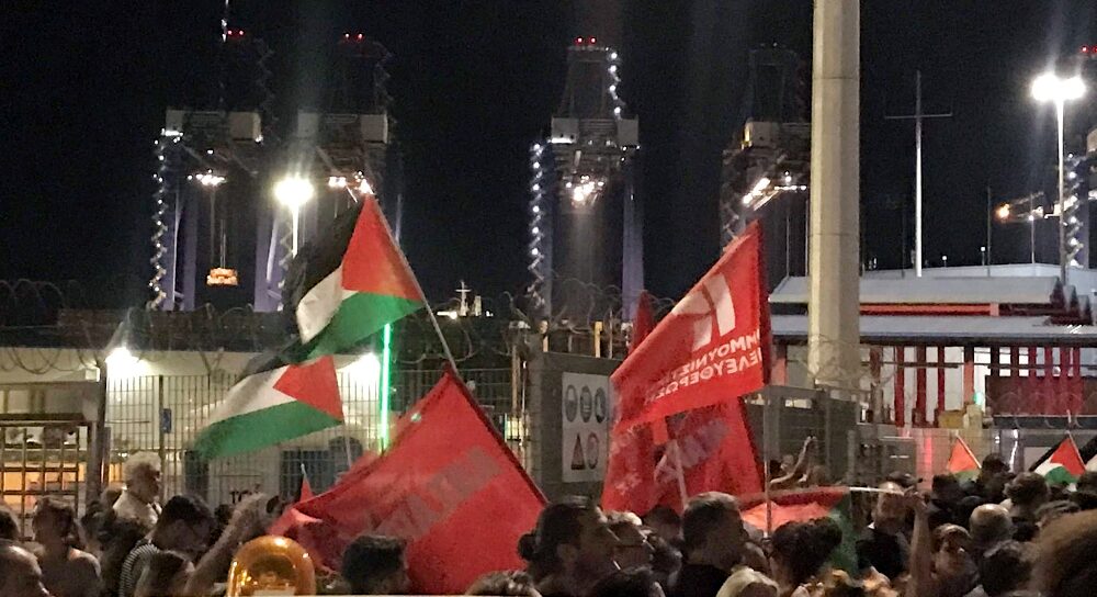 Απαιτούμε να σταματήσει κάθε συνεργασία, κάθε εμπορική/αθλητική/πολιτιστική επαφή με το κράτος του Ισραήλ όσο αυτό συνεχίζει να διαπράττει γενοκτονία στα εδάφη της Παλαιστίνης!