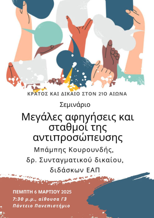 Ο Χαράλαμπος Κουρουνδής είναι διδάκτορας Νομικής και συγγραφέας του βιβλίου Το Σύνταγμα και η Αριστερά (εκδ. Νήσος). Στο τελευταίο του βιβλίο εξετάζει τις μορφές αντιπροσώπευσης όπως αναδύθηκαν από το τέλος του μεσαίωνα μέχρι σήμερα. Διατρέχει την αγγλική, αμερικανική και γαλλική επανάσταση με τα συντάγματα και τα κοινοβούλια που προέκυψαν, τις συγκρούσεις που ανέκυψαν στη συνέχεια για την επέκταση του εκλογικού δικαιώματος, το σύστημα των εργατικών συμβουλίων και το Σύνταγμα του 1918 στη Ρωσία. Διαπραγματεύεται ζητήματα όπως η ανεξαρτησία των αντιπροσώπων απέναντι στους εκλογείς τους, η δράση των κομμάτων και οι περιπτώσεις απαγόρευσής τους, η σημερινή κρίση της αντιπροσωπευτικής δημοκρατίας παγκόσμια και στην Ελλάδα. Καταλήγει ότι το ζητούμενο είναι η «άρση του διαχωρισμού ανάμεσα στην ιδιότητα του πολίτη και την κοινωνική ύπαρξη, η οποία οφείλεται στη δομή του πραγματικού που περιορίζει εγγενώς τη δυνατότητα επέκτασης της πολιτικής ως διαδικασίας συλλογικής διαβούλευσης».