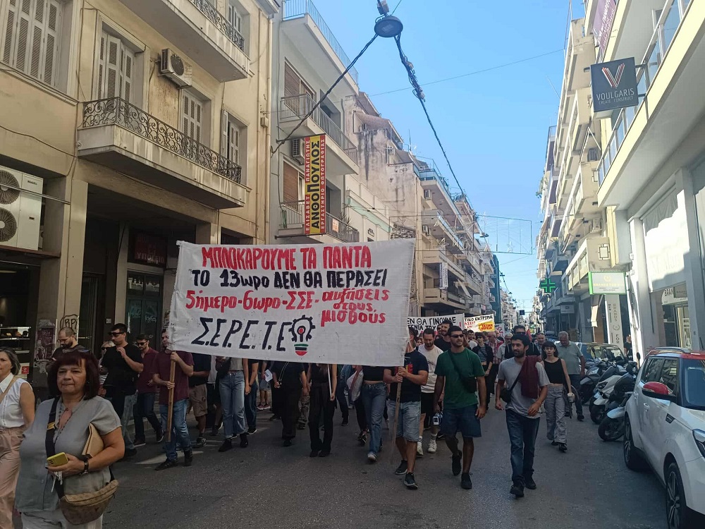 Χιλιάδες εργαζόμενοι και εργαζόμενες συμμετείχαν την Τετάρτη 1η Οκτώβρη στις απεργιακές συγκεντρώσεις στην Πάτρα ενάντια στο νέο εργασιακό νομοσχέδιο – τομή της κυβέρνησης που μέσα σε άλλα θεσμοθετεί την 13ωρη εργασία!