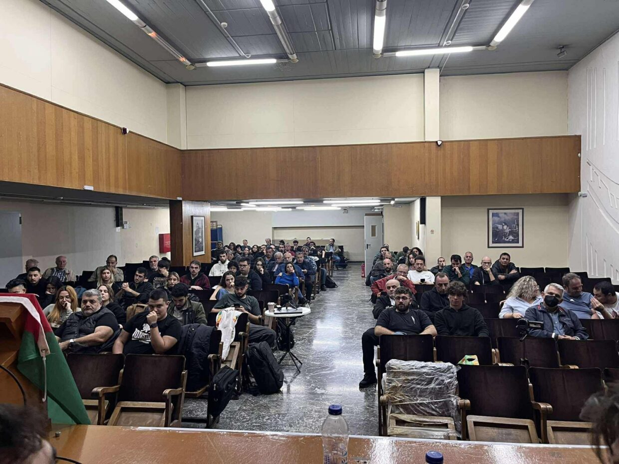 Με μεγάλη επιτυχία, πραγματοποιήθηκε την Τετάρτη στο Μέγαρο Λόγου και Τέχνης εργατική εκδήλωση με τίτλο «Για νέους νικηφόρους εργατικούς αγώνες: Συμπεράσματα από την απεργία των Ναυτεργατών στην Πάτρα».
