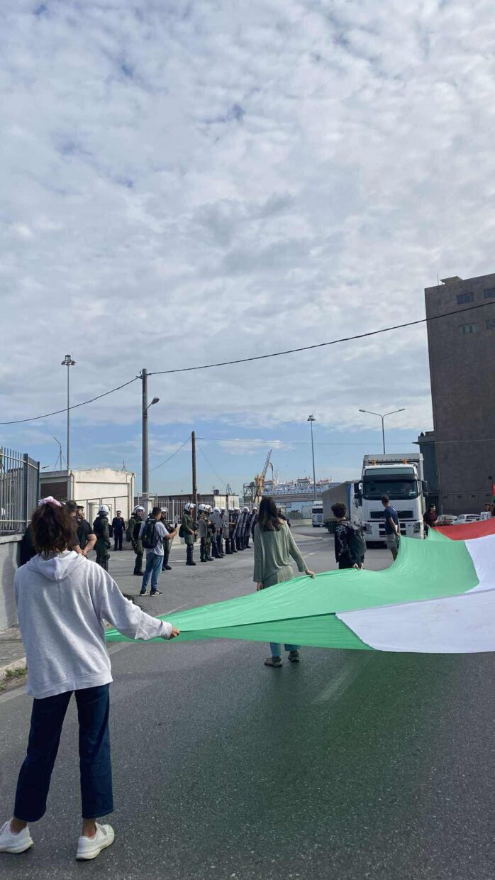 Για άλλη μια φορά, η αστυνομία, με εντολή της κυβέρνησης, επιτέθηκε στους δεκάδες διαδηλωτές που προσπάθησαν να μπλοκάρουν το κρουαζιερόπλοιο «Crown Iris», που μεταφέρει Ισραηλινούς υποστηρικτές της γενοκτονίας.