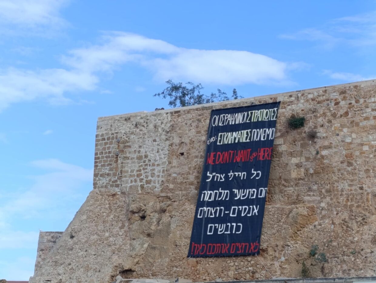 Είναι ανεπιθύμητοι/ες! Δεν έχουν καμία θέση στις πόλεις, τα νησιά και τα χωριά μας! Δε θέλουμε τα ματωμένα χρήματά τους, δεν ανεχόμαστε την προπαγάνδα τους υπέρ της γενοκτονίας και τα χυδαία, υβριστικά, ρατσιστικά τους συνθήματα κατά των Παλαιστινίων και των Αράβων.