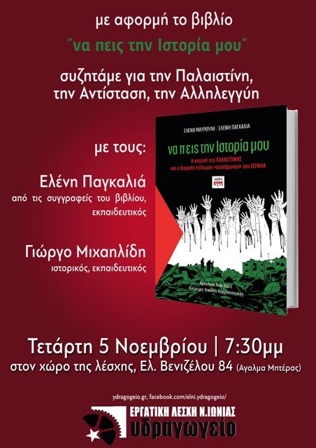 Η Εργατική Λέσχη Νέας Ιωνίας οργανώνει εκδήλωση – συζήτηση με αφορμή το βιβλίο «Να πεις την ιστορία μου» των Ελένης Μαυρούλη και Ελένης Παγκαλιά.