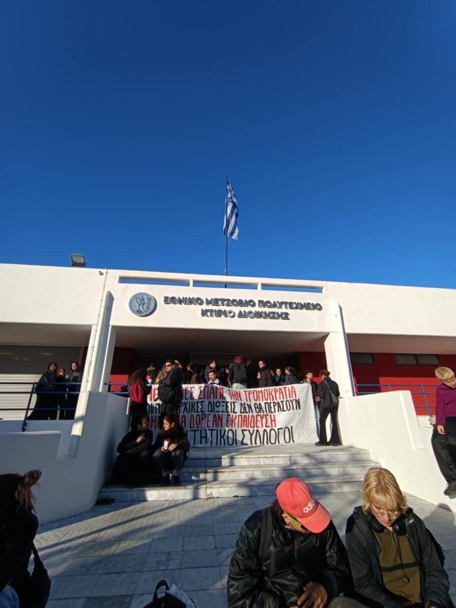 Φυσικά ο πρύτανης του ΕΜΠ δεν είχε παραλείψει να “καλέσει” και αστυνομικές δυνάμεις να έχουν παρουσία στον χώρο γεγονός που καταγγέλθηκε από τους φοιτητές.