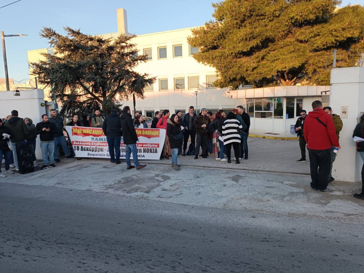 Με μαζική συμμετοχή στέφθηκε η 24ωρη απεργία του σωματείου εργαζομένων στη ΝΟΚΙΑ ως απάντηση στο νέο κύμα απολύσεων περίπου 200 εργαζομένων στο πλαίσιο παγκόσμιων περικοπών της πολυεθνικής εταιρείας.