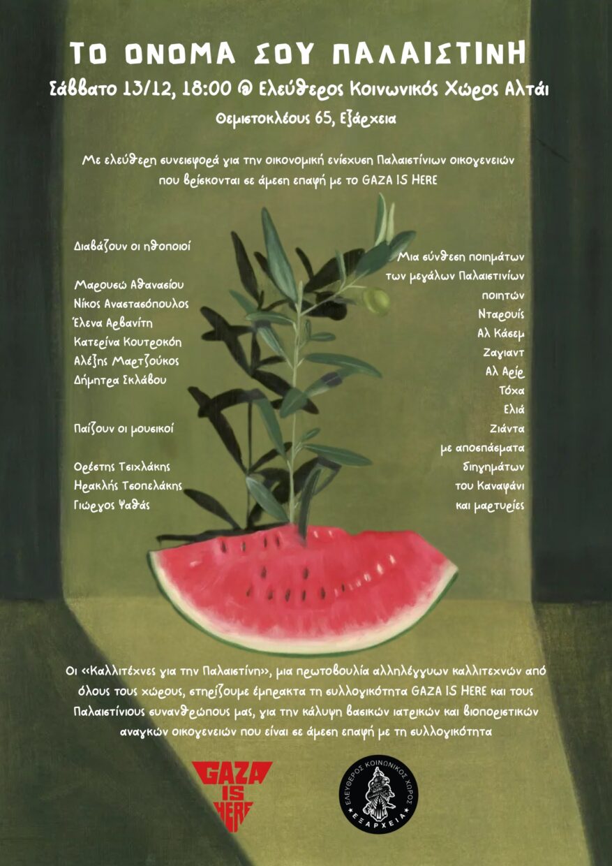 Οι «Καλλιτέχνες για την Παλαιστίνη», μια πρωτοβουλία αλληλέγγυων καλλιτεχνών από