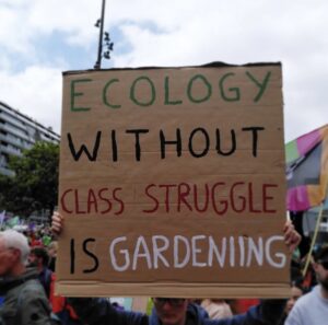 Σε αυτό το αναπτυσσόμενο πεδίο της ταξικής πάλης, στην αυγή της εποχής που επιστημονικοί κύκλοι ανά τον κόσμο αποκαλούν Ανθρωπόκαινο, υπογραμμίζοντας την σημασία ενός είδους που έχει τόσο μεγάλο αντίκτυπο σε όλο τον πλανήτη, κάθε τάξη καλείται να δώσει τις δικές της απαντήσεις. Η αστική τάξη και το κεφάλαιο είδε στο περιβαλλοντικό ζήτημα ένα νέο πεδίο κερδοφορίας. Είδε το όνειρο της αχαλιναγώγητης «πράσινης ανάπτυξης» ενώ ταυτόχρονα συνεχίζει την ανάπτυξη εις βάρος της φύσης και των ζωντανών οργανισμών σε παραδοσιακούς τομείς της παραγωγής, όπως η βαριά βιομηχανία, αλλά και σε νέους όπως τα κέντρα δεδομένων και η Τεχνητή Νοημοσύνη. Απεναντίας, στο στρατόπεδο της εργατικής πολιτικής επιχειρείται ακόμα να εκφραστεί μία συνεκτική θεωρία και πολιτική για την αντιμετώπιση της περιβαλλοντικής καταστροφής. Σε αυτό το πλαίσιο έχουν αναδειχθεί ορισμένες φωνές μαρξιστών που επιχειρούν να συνδέσουν την οικολογία και τον μαρξισμό ως ενότητα θεωρίας και πράξης και τα διάφορα περιβαλλοντικά και οικοσοσιαλιστικά κινήματα ανά τον κόσμο.