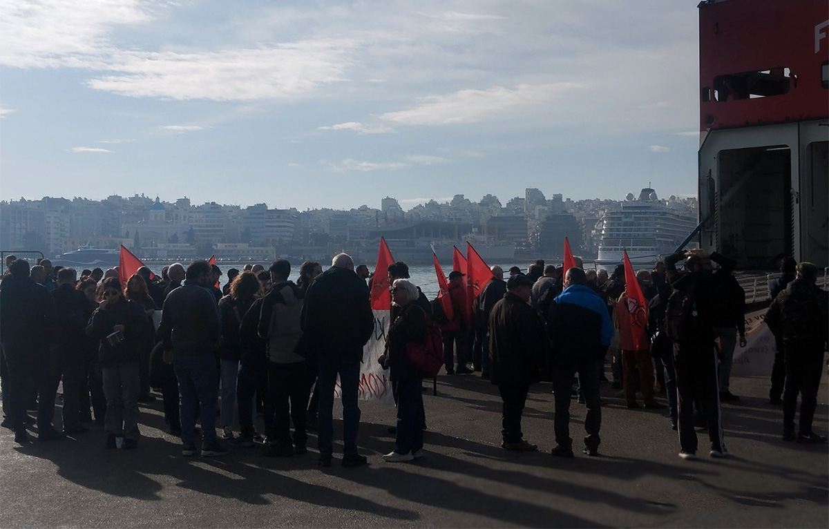 Απεργιακή συγκέντρωση πραγματοποίησε η ΠΕΝΕΝ το πρωί της Παρασκευής έξω από το πλοίο “Φαιστός Παλλάς”.