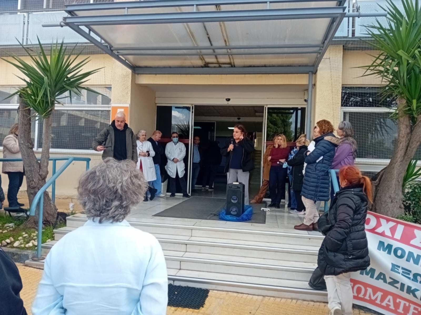 Συγκέντρωση αλληλεγγύης πραγματοποιήθηκε την Δευτέρα στο Νοσοκομείο Γεννηματάς ενάντια στην καθαίρεση της Μαρίας Χαρχαριδου από διευθυντική θέση τομέα γιατί δεν έκανε αξιολόγηση στο Δημόσιο με το ν. Βορίδη συμμετέχοντας στην απεργία αποχή από την αξιολόγηση που έχει προκηρύξει η ΑΔΕΔΥ.