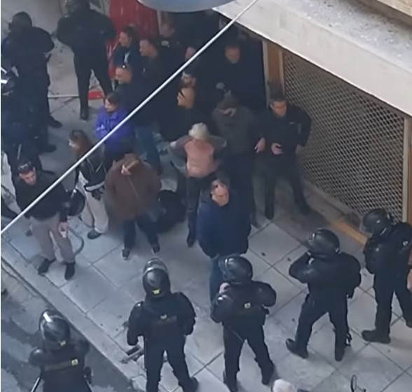Ήδη από το πρωί, η αστυνομία έδειξε τις προθέσεις της προς τις δυνάμεις της αντικαπιταλιστικής Αριστεράς… Άνδρες της ομάδας ΔΡΑΣΗ περικύκλωσαν μέλη της Κομμουνιστικής Απελευθέρωσης, ενώ αυτά συγκεντρώνονταν στα γραφεία της οργάνωσης, στην οδό Ζαλόγγου στο κέντρο της Αθήνας, προκειμένου να κινηθούν οργανωμένα προς το μεγάλο συλλαλητήριο. Αμέσως μετά, μία δεύτερη ομάδα της ίδιας μονάδας επιχείρησε να εισβάλει εντός των γραφείων! Χωρίς προειδοποίηση, χωρίς ένταλμα, οι αστυνομικοί προσπάθησαν να μπουκάρουν στα γραφεία πολιτικής οργάνωσης, αντιγράφοντας… Τραμπικές λογικές. Τα μέλη της Κομμουνιστικής Απελευθέρωσης, που βρίσκονταν μέσα στον χώρο απέτρεψαν την εισβολή παρά τα χτυπήματα και τα σπρωξίματα που δέχτηκαν. Παράλληλα, μαζί με τις δύο ομάδες της ΔΡΑΣΗ κατέφτασε και διμοιρία των ΜΑΤ, δημιουργώντας δεύτερη ζώνη περικύκλωσης. Μέλη της οργάνωσης βγήκαν έξω από τα γραφεία και απαίτησαν την αποχώρηση των αστυνομικών, οι οποίοι τελικά απομακρύνθηκαν μετά από λίγα λεπτά.