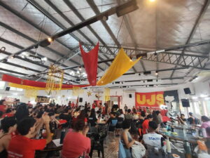 Ένα μήνα πριν αντιπροσωπεία της νεολαίας Κομμουνιστική Απελευθέρωση βρέθηκε στην Αργεντινή έπειτα από πρόσκληση της UJS (Ένωση Νέων για τον Σοσιαλισμό), νεολαίας του Partido Obrero (Εργατικό Κόμμα). Εκεί συμμετείχαν σε πλήθος πολιτικών και πολιτιστικών εκδηλώσεων, σε κινητοποιήσεις του αργεντίνικου λαού και σε διεθνείς διεργασίες. Η παρουσία τους έδειξε την αλληλεγγύη της οργάνωσης στον μαχόμενο λαό της Αργεντινής απέναντι στην αυταρχική κυβέρνηση Μιλέι αλλά και συνολικά στους λαούς της λατινικής Αμερικής, που επί δεκαετίες έρχονται αντιμέτωποι με ένα από τα πιο σκληρά πρόσωπα του ιμπεριαλισμού.