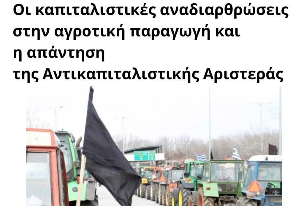 Η Κομμουνιστική Απελευθέρωση Θεσσαλονίκης διοργανώνει το Σάββατο 14/3 στις 7 μ.μ. στη Λέσχη Αναιρέσεις (Πελοποννήσου 4) εκδήλωση με θέμα «Οι καπιταλιστικές αναδιαρθρώσεις στην αγροτική παραγωγή και η απάντηση της Αντικαπιταλιστικής Αριστεράς». Ομιλητές: Μαρία Δημάκου, Βαγγέλης Νάνος.