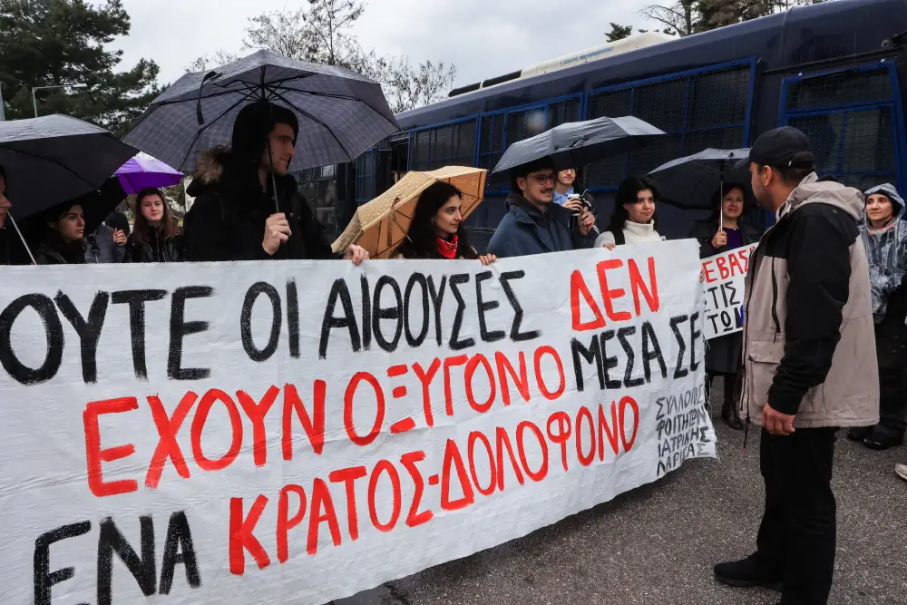 Με αστυνομοκρατία, ασφυκτικούς ελέγχους ακόμα και σε συγγενείς θυμάτων και χωρίς καμιά ουσιαστική αλλαγή στις συνθήκες διεξαγωγής της δίκης στην άθλια αίθουσα που έχει διαμορφωθεί, συνεχίστηκε σήμερα 1η Απριλίου, για δεύτερη ημέρα, η δίκη για το κρατικό – εργοδοτικό έγκλημα των Τεμπών.