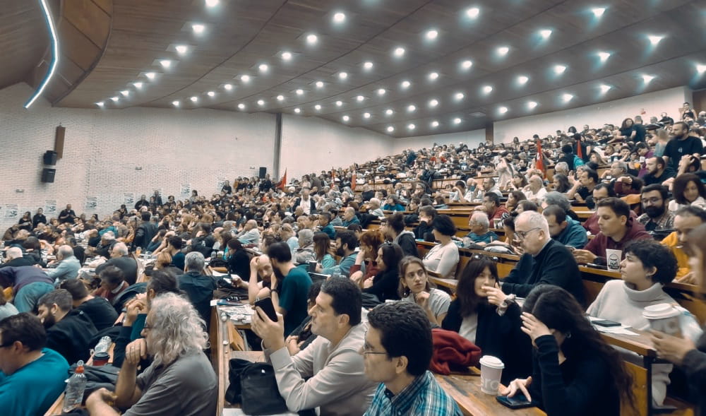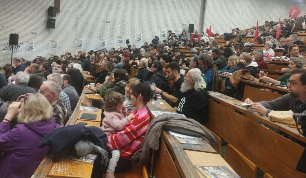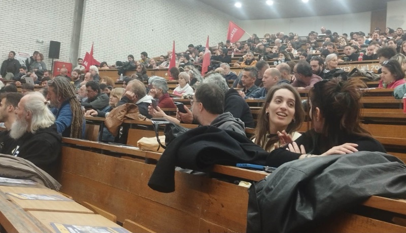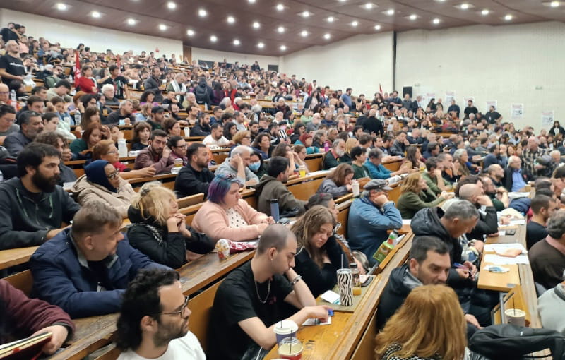 Ιδιαίτερα συγκινητική ήταν η παρέμβαση αγωνιστών από την Παλαιστίνη το Σάββατο και την Κυριακή με ολόκληρη την αίθουσα να σηκώνεται όρθια και να χειροκροτεί φωνάζοντας «Λευτεριά στην Παλαιστίνη».